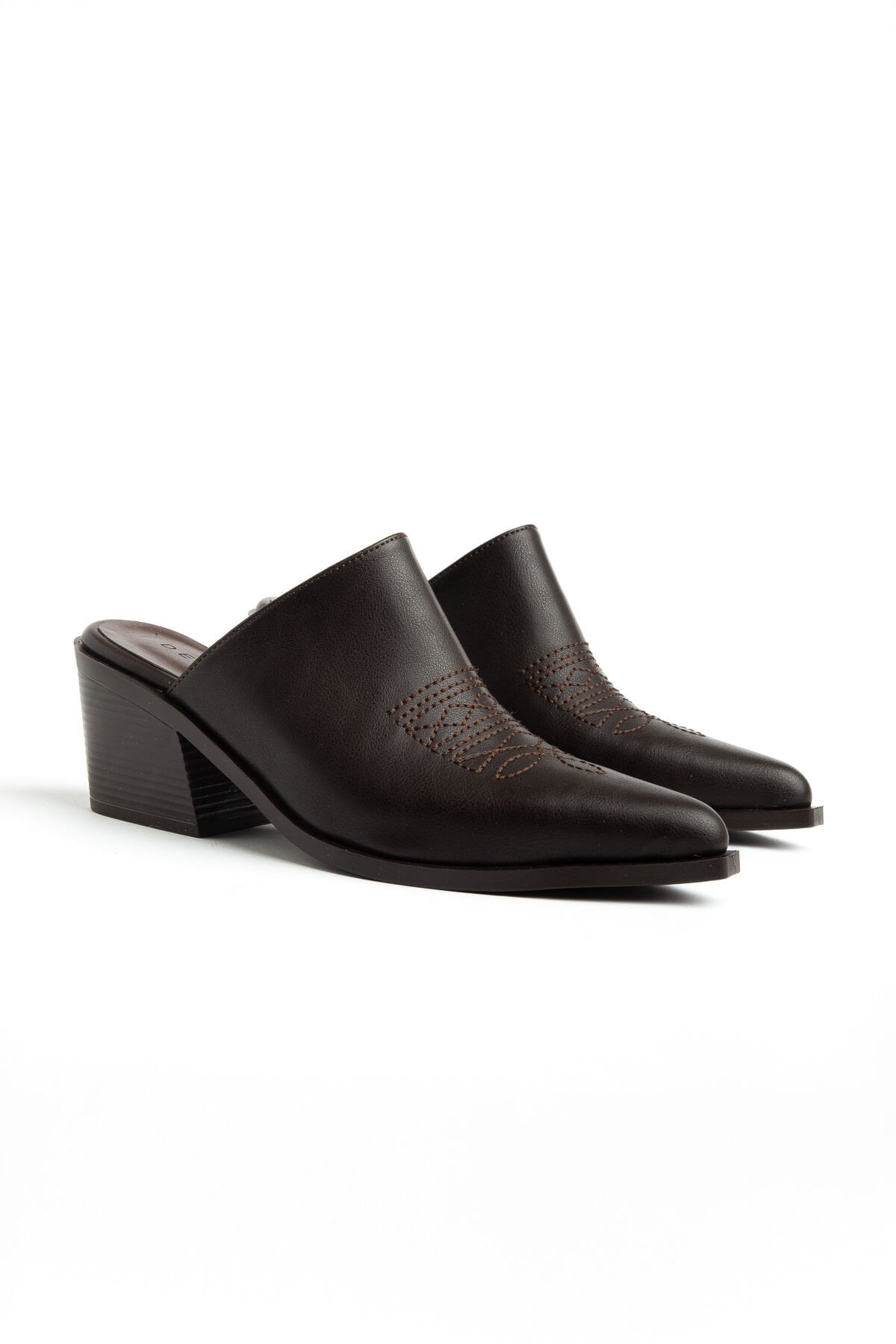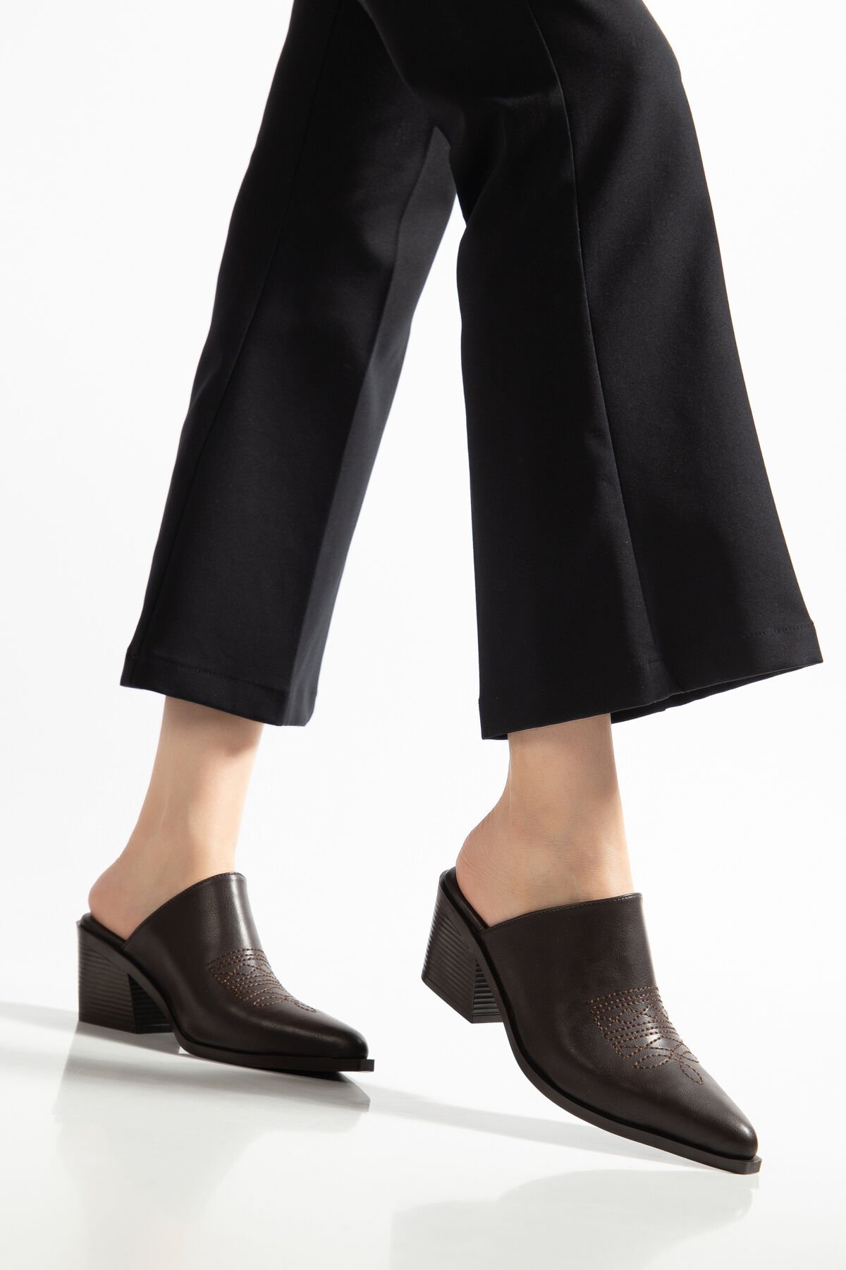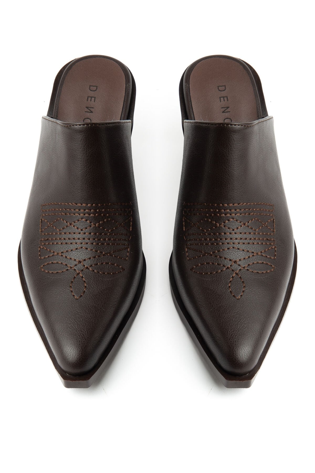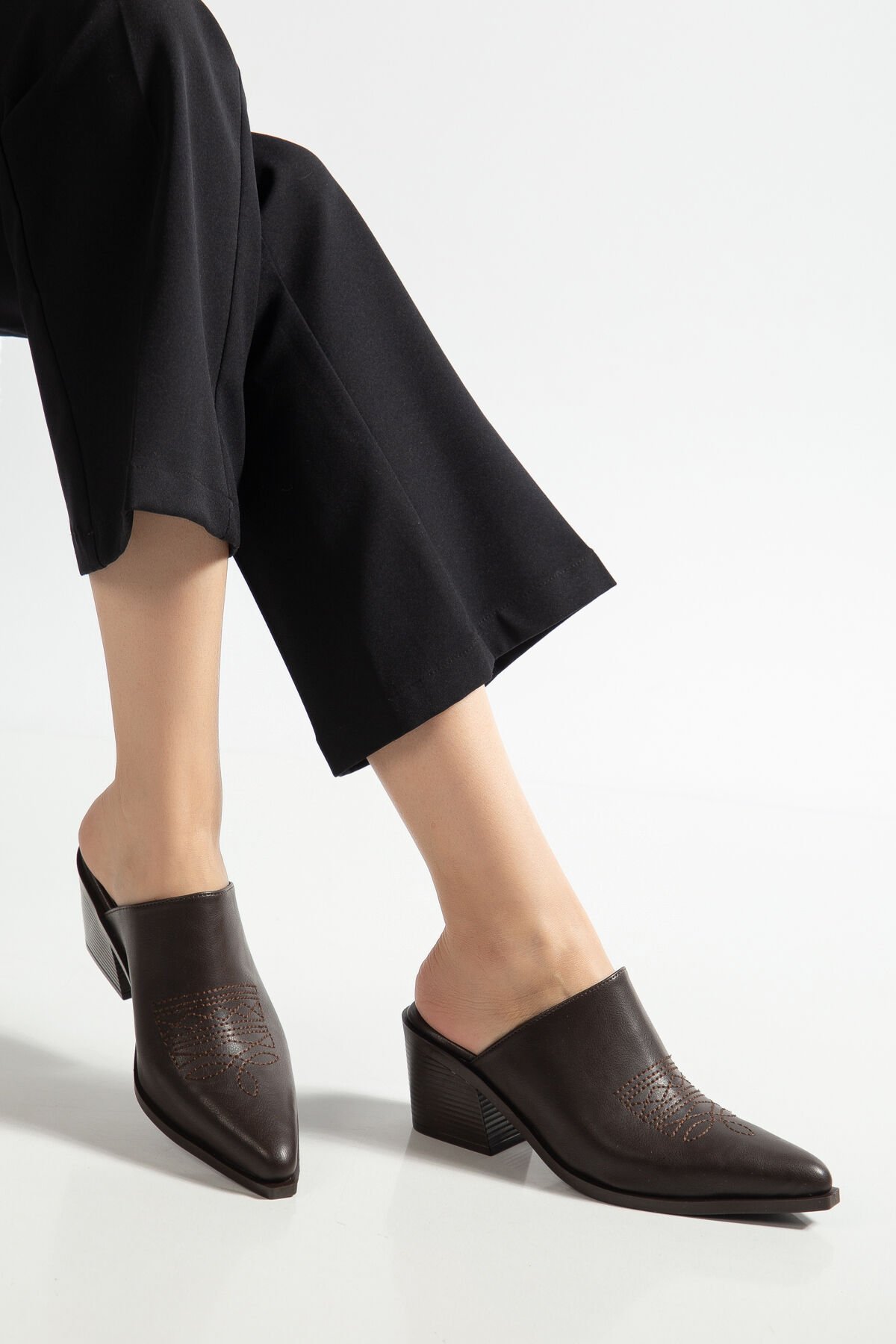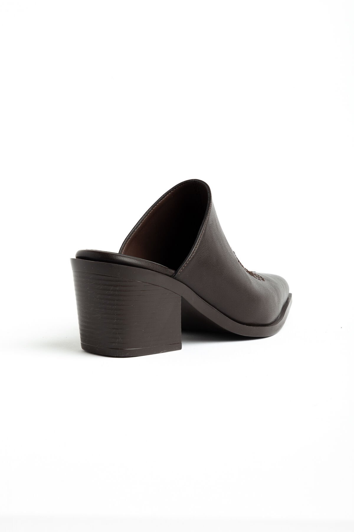 Acı Kahve Mat Deri Nakışlı Trok Detay Terlik 7550