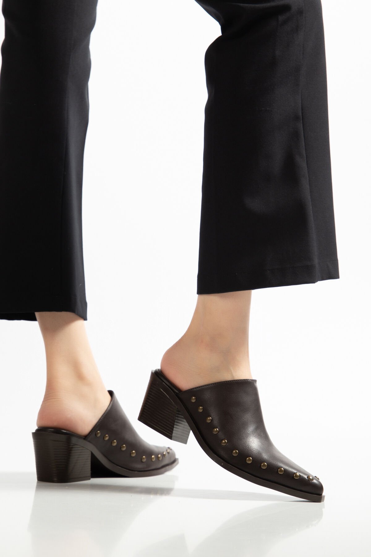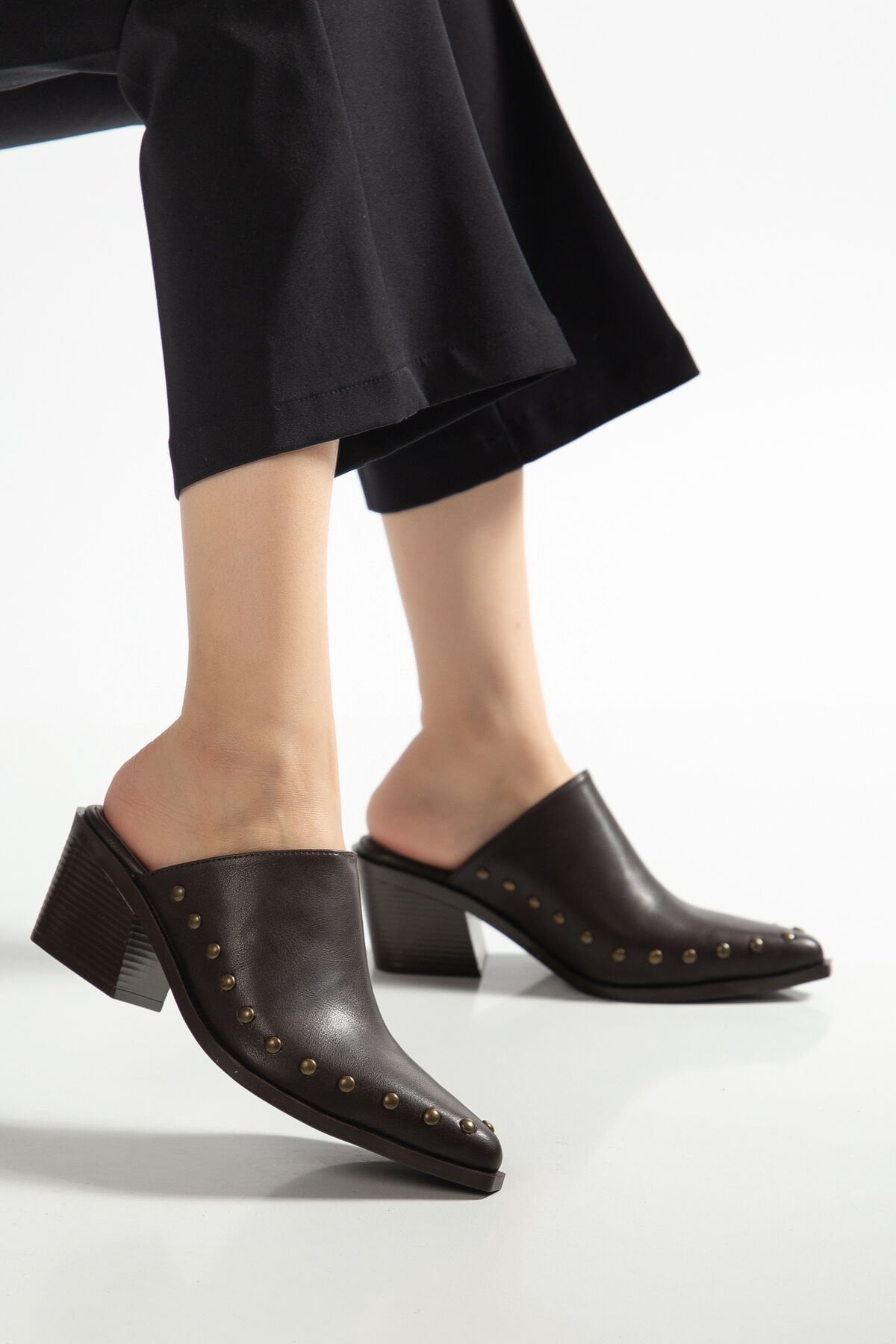 Acı Kahve Mat Deri Nakışlı Zımba Detay Terlik 4422