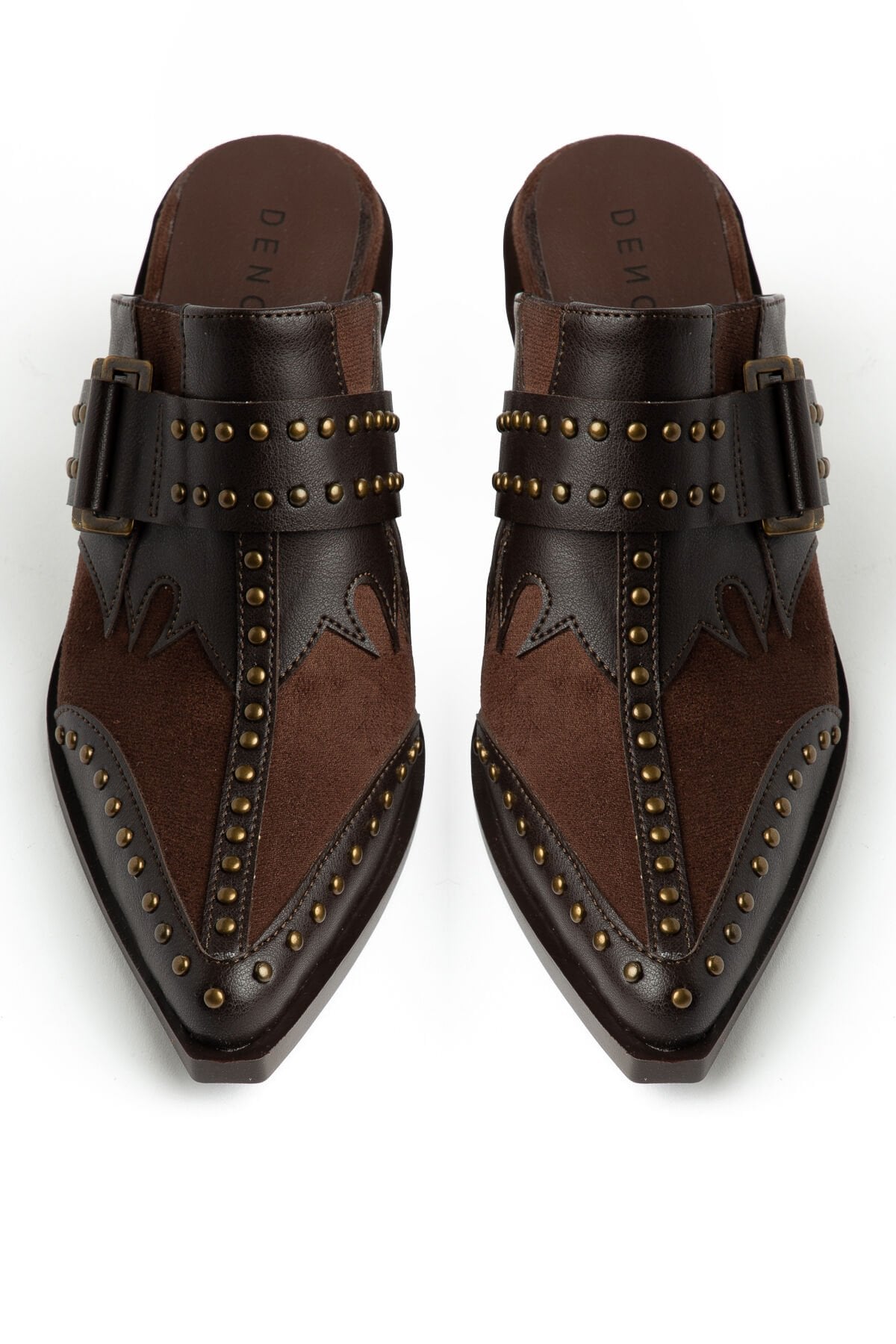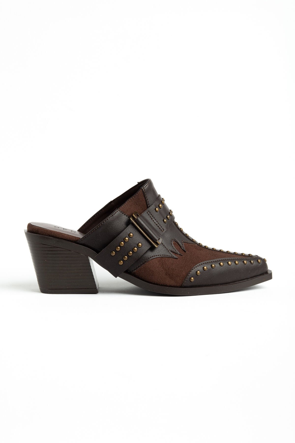 Acı Kahve Mat Deri Pim Detay Detay Terlik 7777
