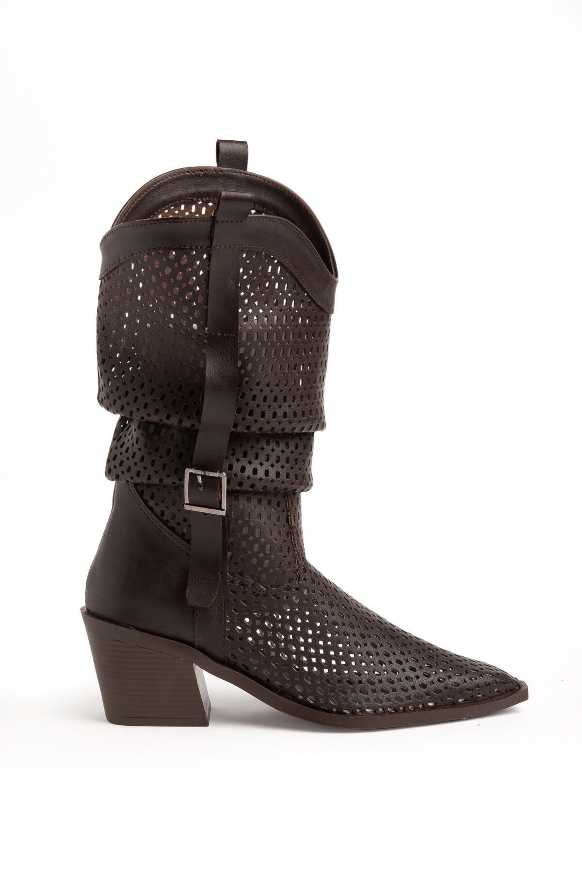 Acı Kahve Mat Deri Western Delikli Kovboy Büzgülü Bot 9555