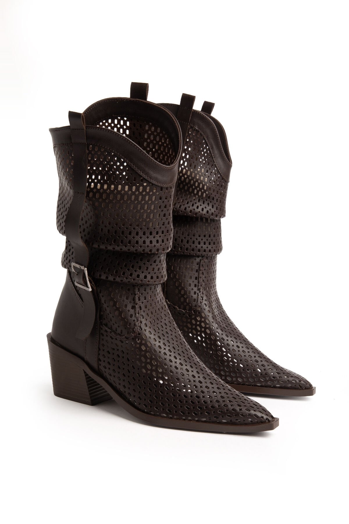 Acı Kahve Mat Deri Western Delikli Kovboy Büzgülü Bot 9555 9555(Kopya-ZFK)(Kopya-SQR)(Kopya-FQE)