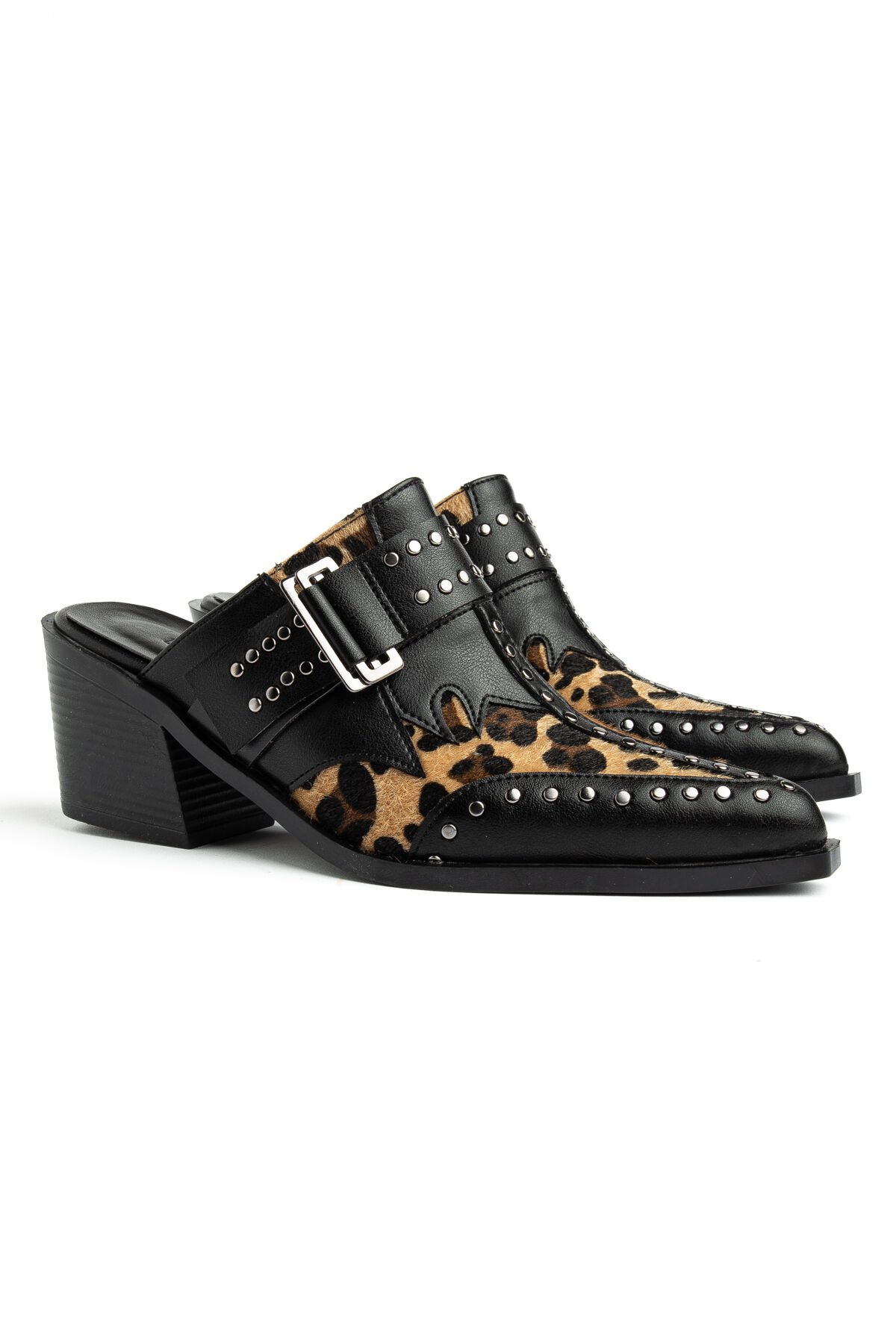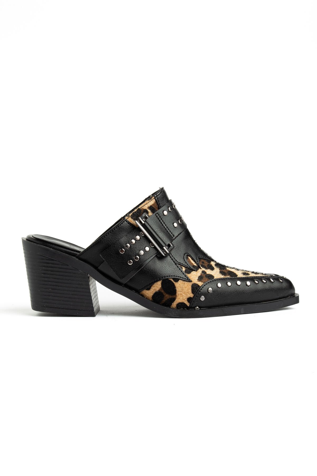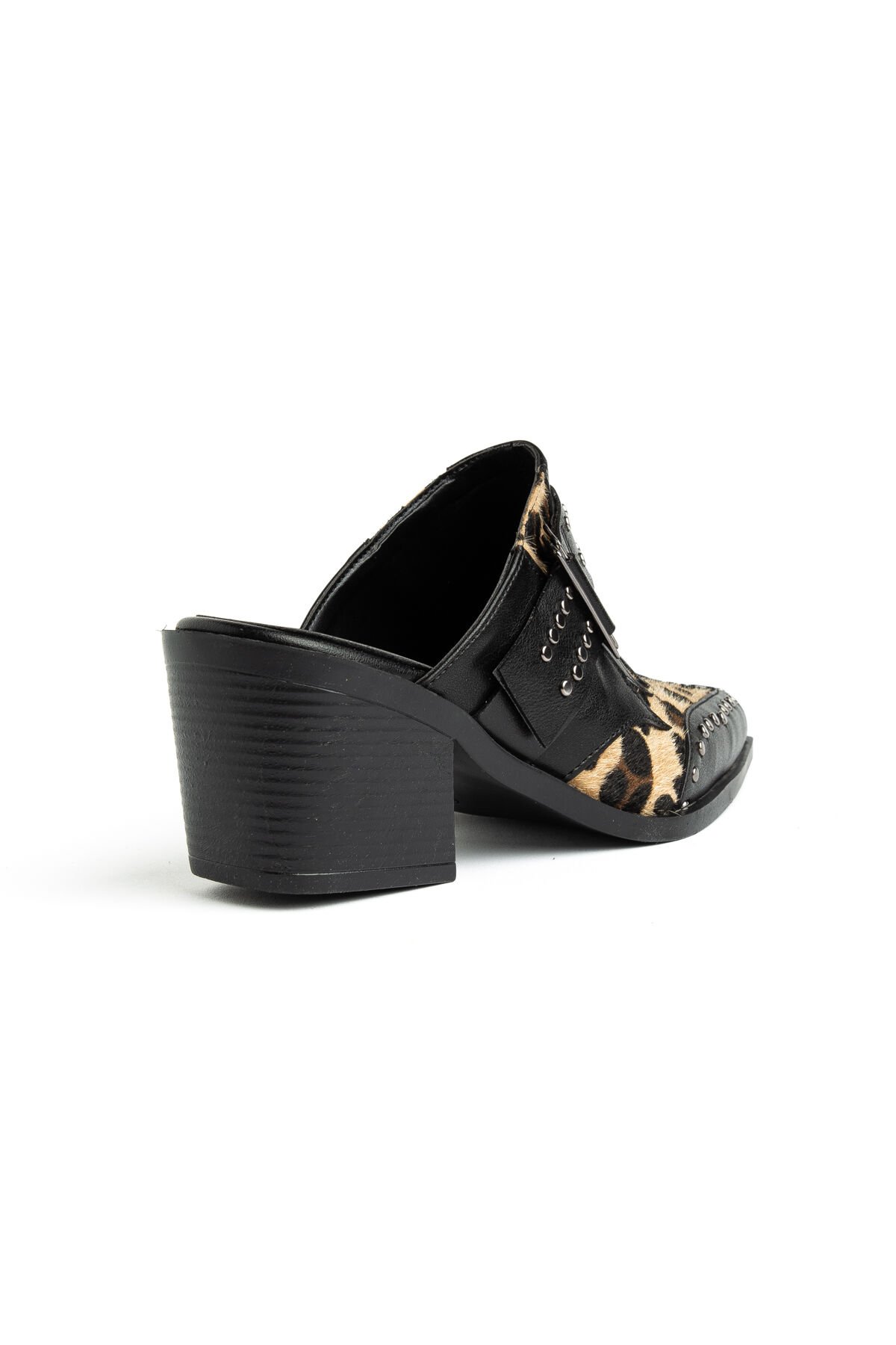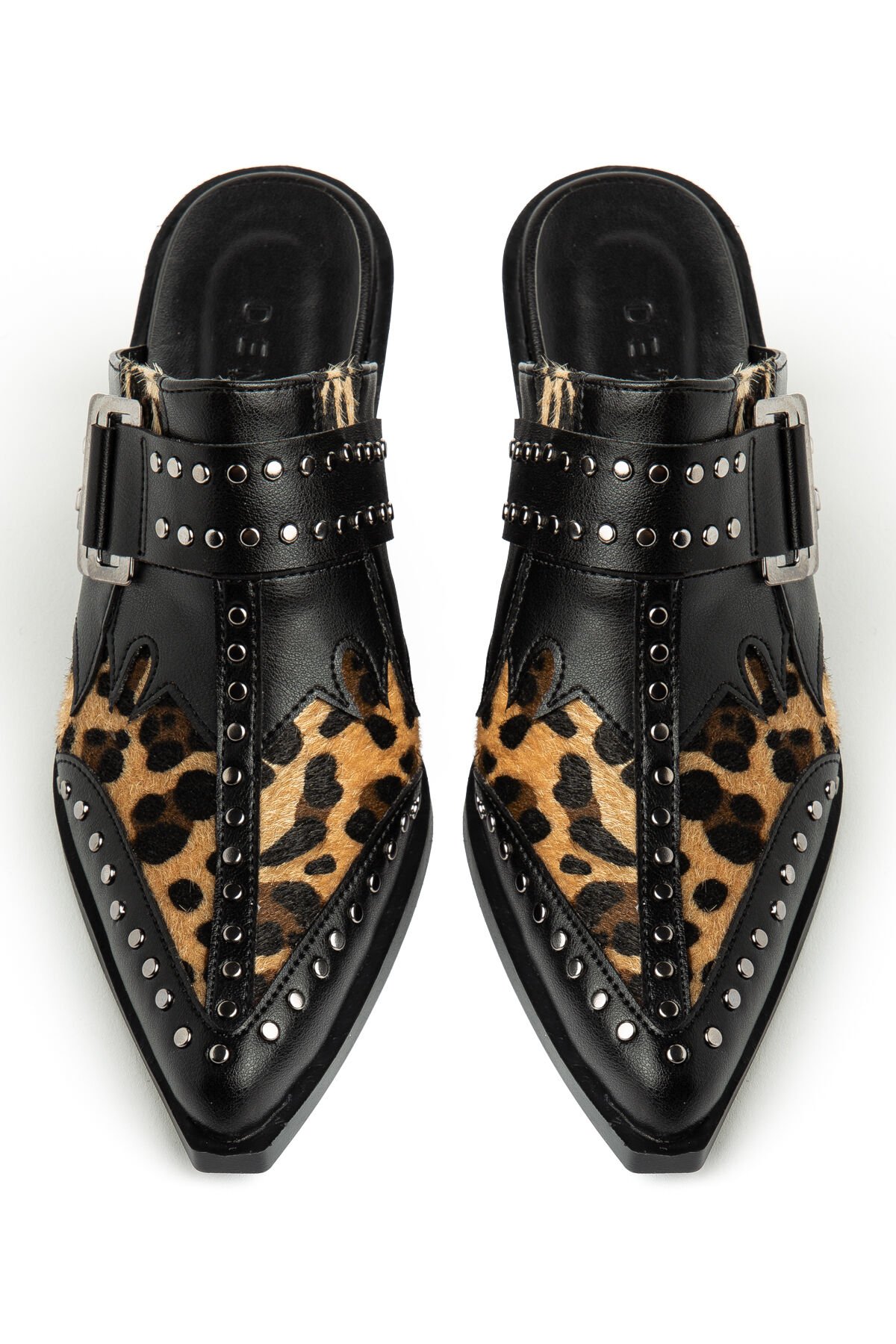 Siyah Leopar Mat Deri Pim Detay Detay Terlik 7777