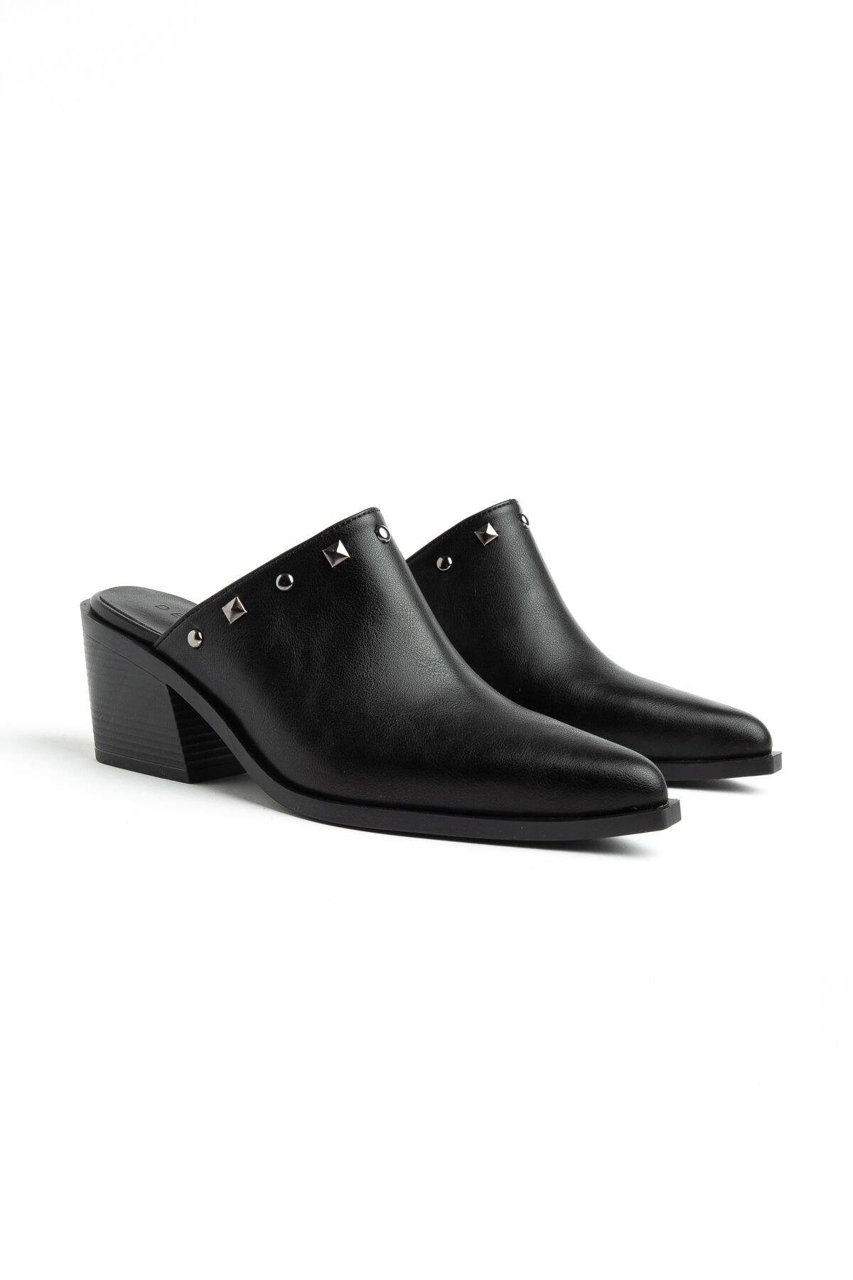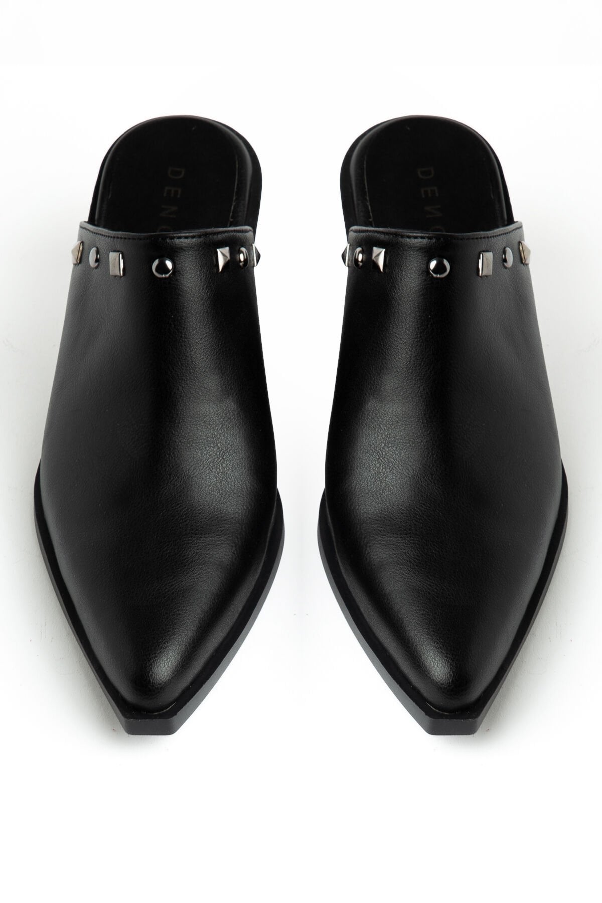 Siyah Mat Deri Kapalı Trok Detay Terlik 6433