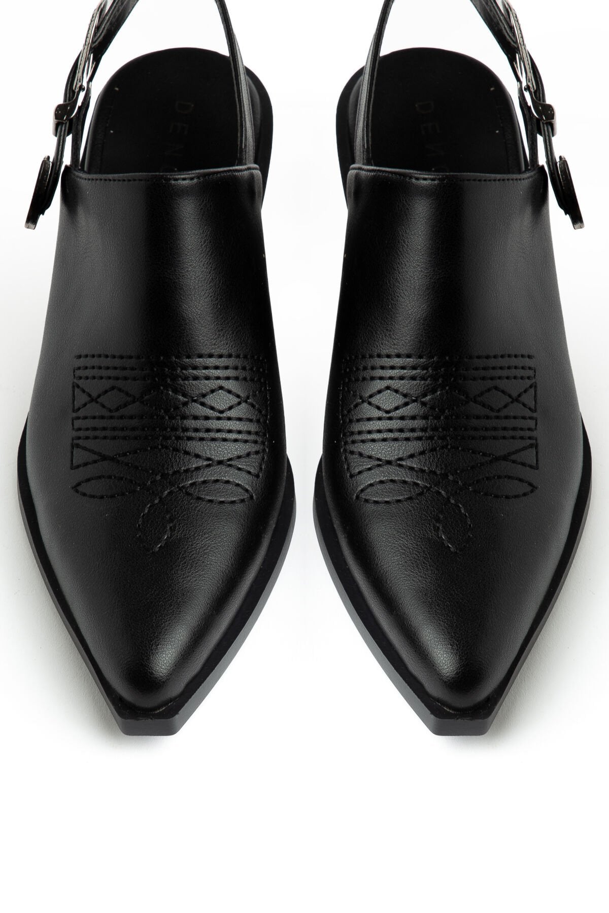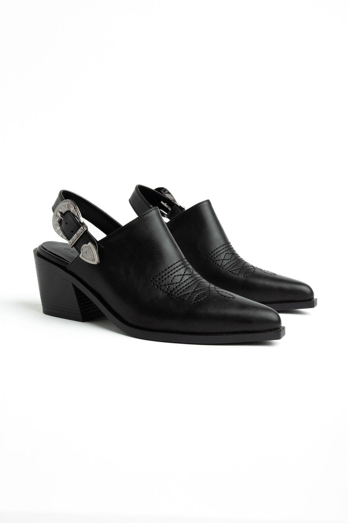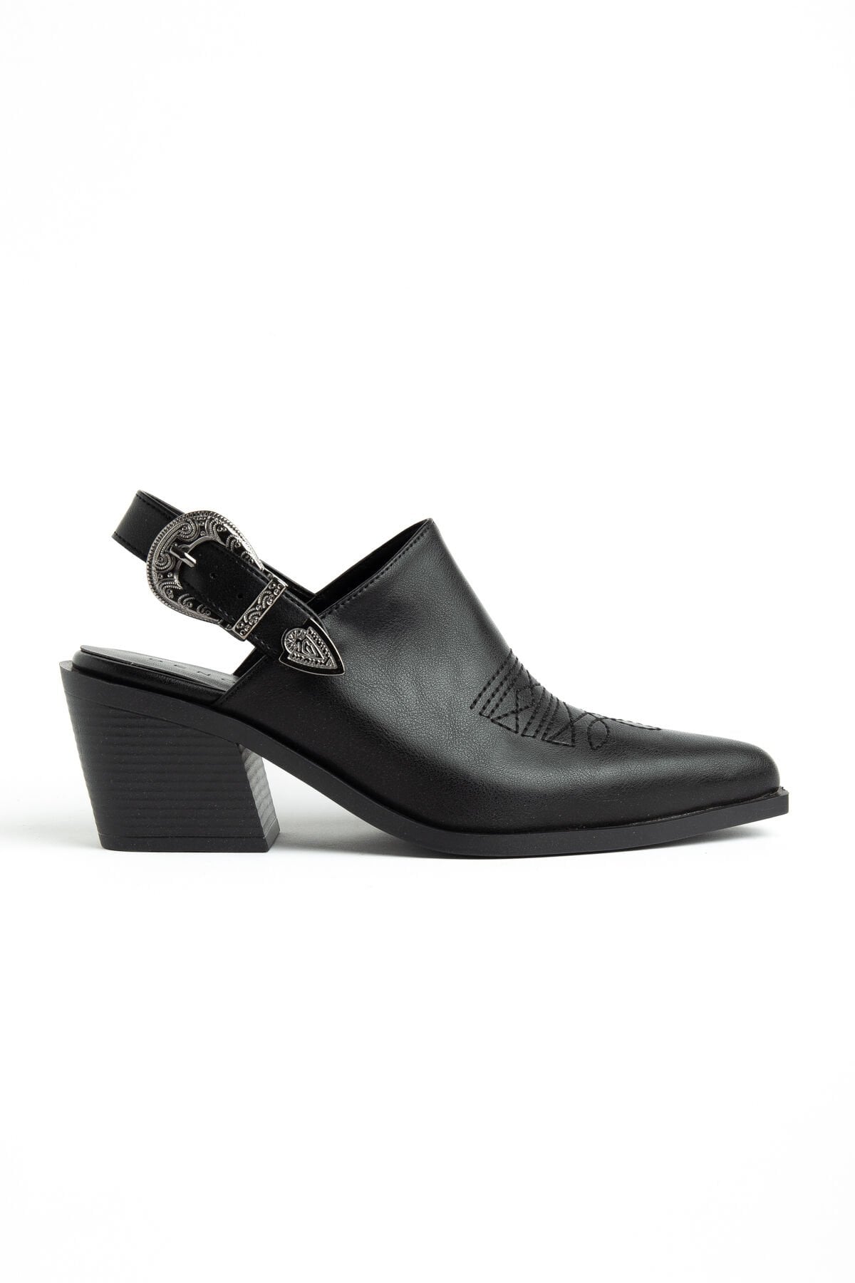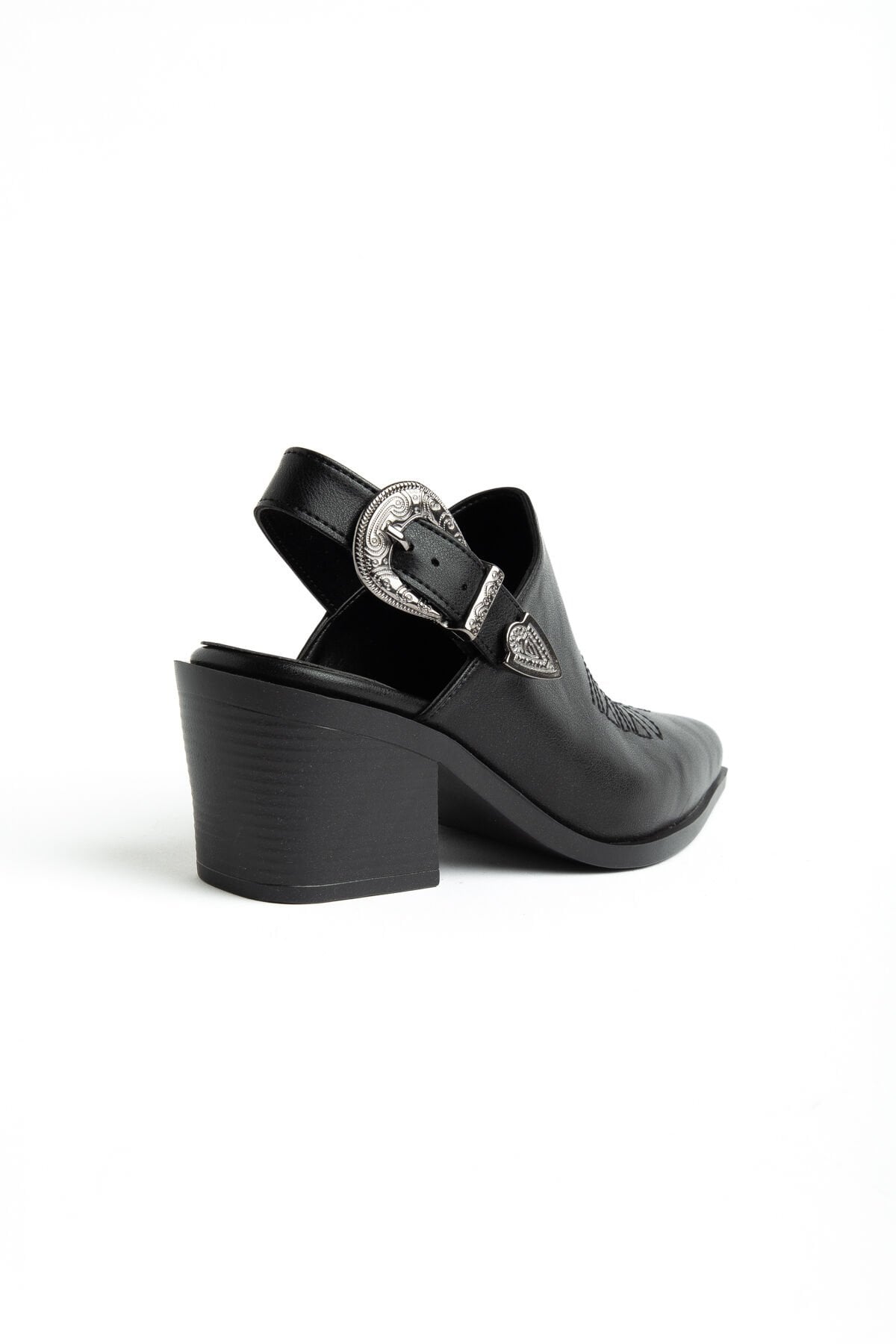 Siyah Mat Deri Nakışlı Arkası Açık Sandalet 1911
