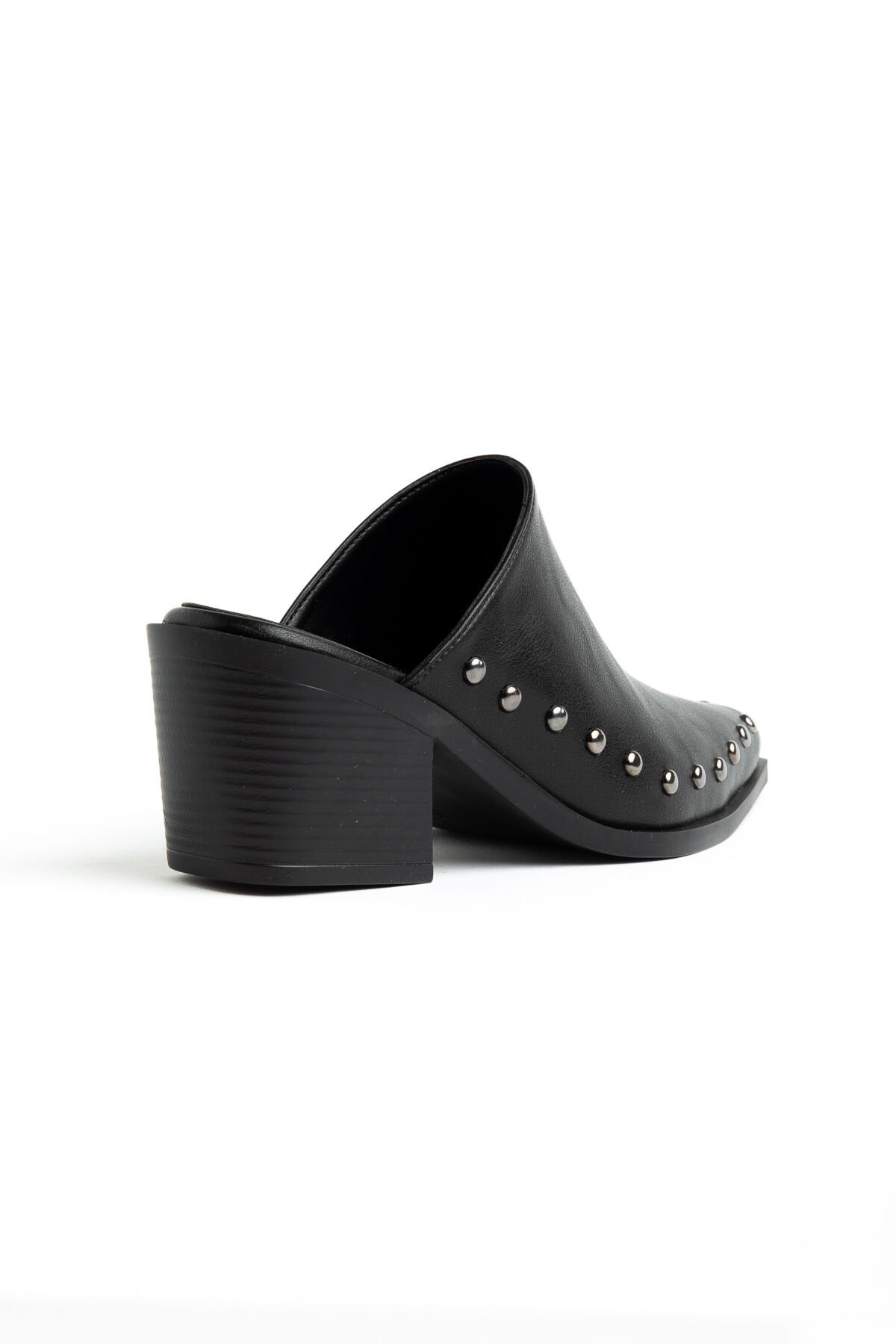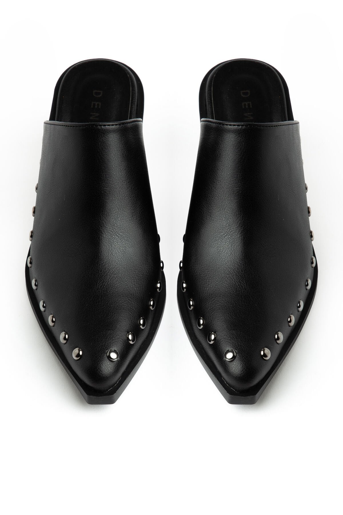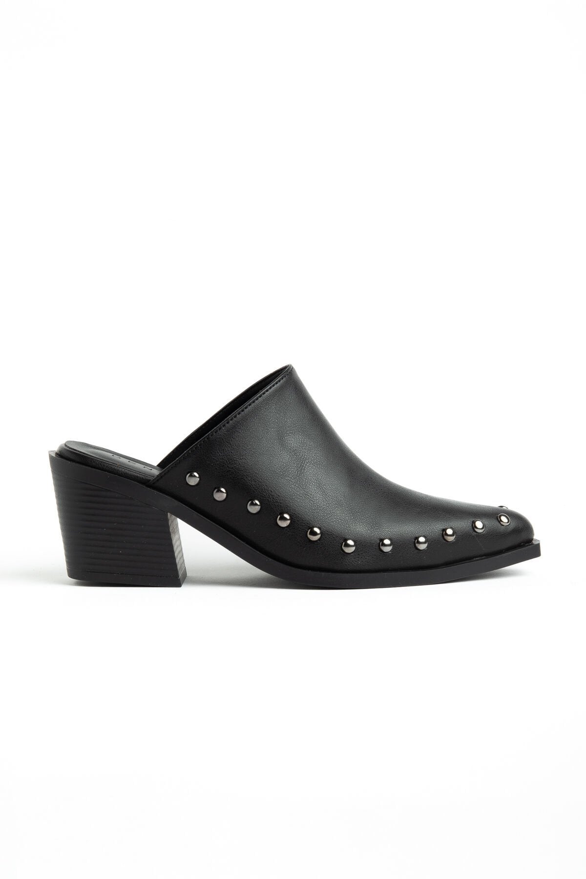 Siyah Mat Deri Nakışlı Zımba Detay Terlik 4422