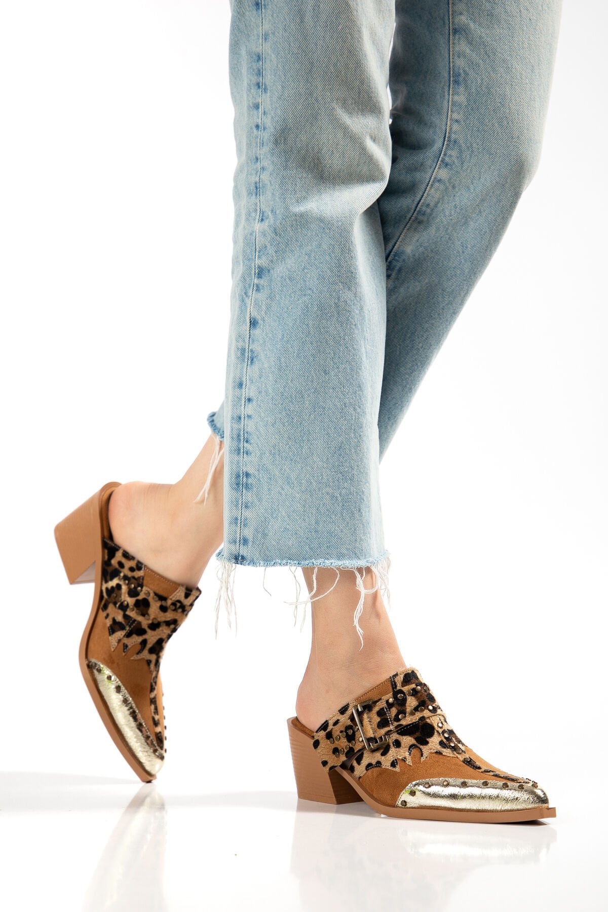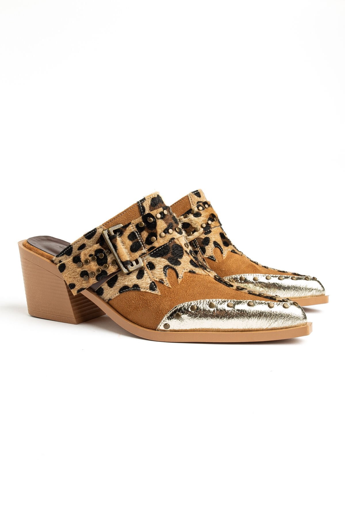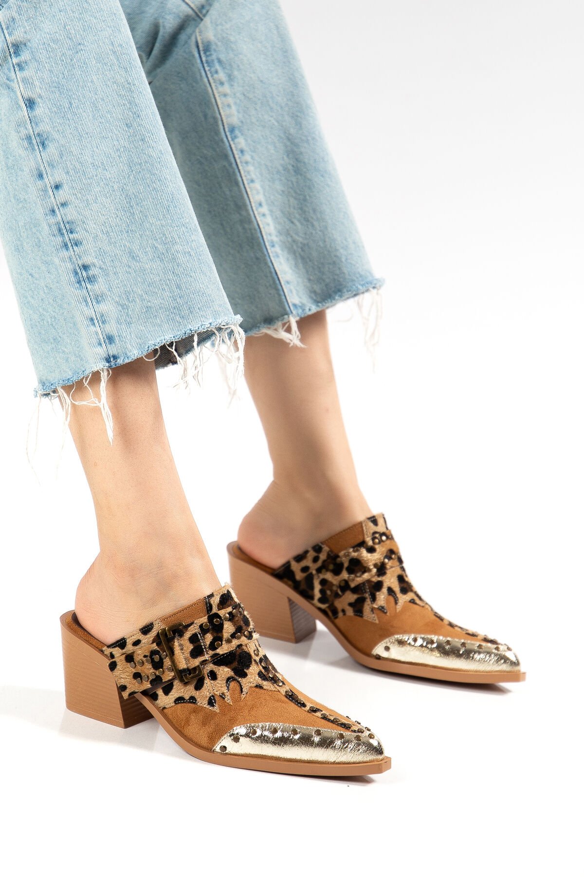 Taba Leopar Mat Süet Pim Detay Detay Terlik 7777