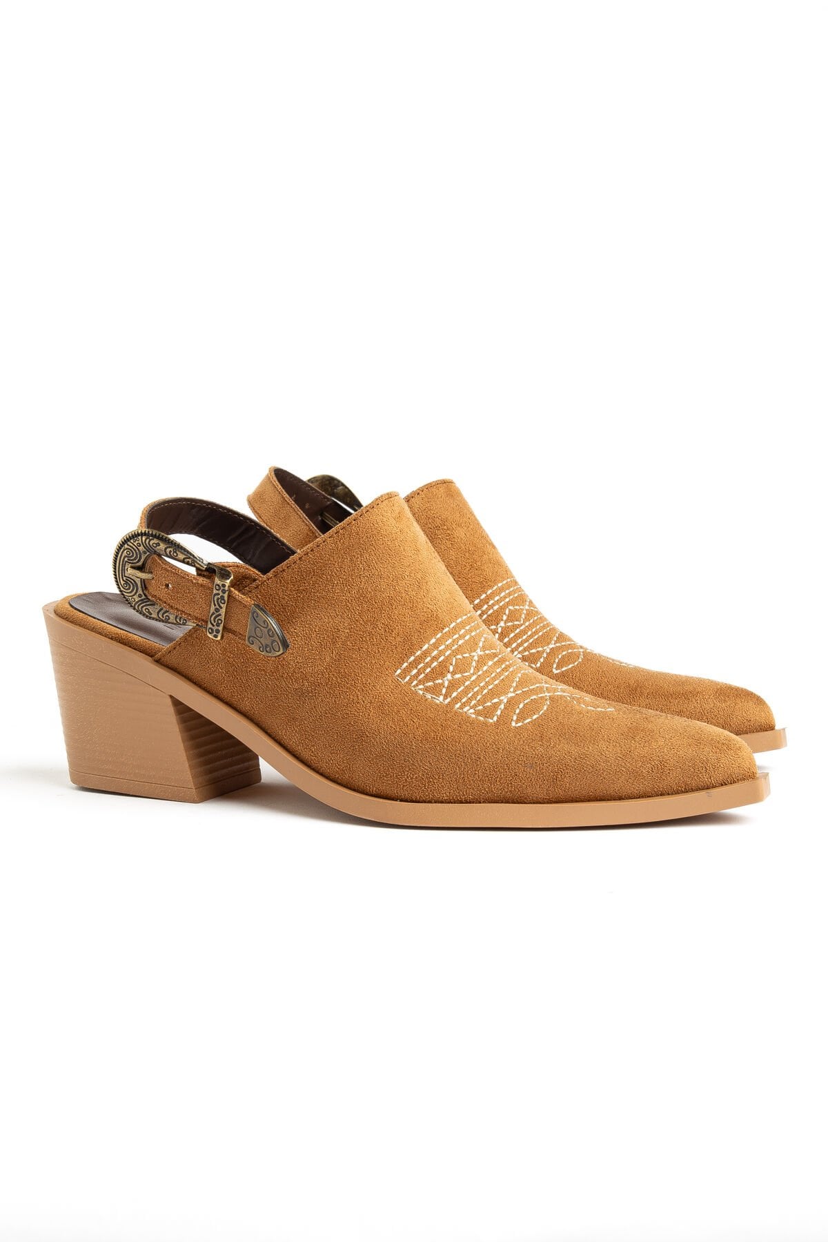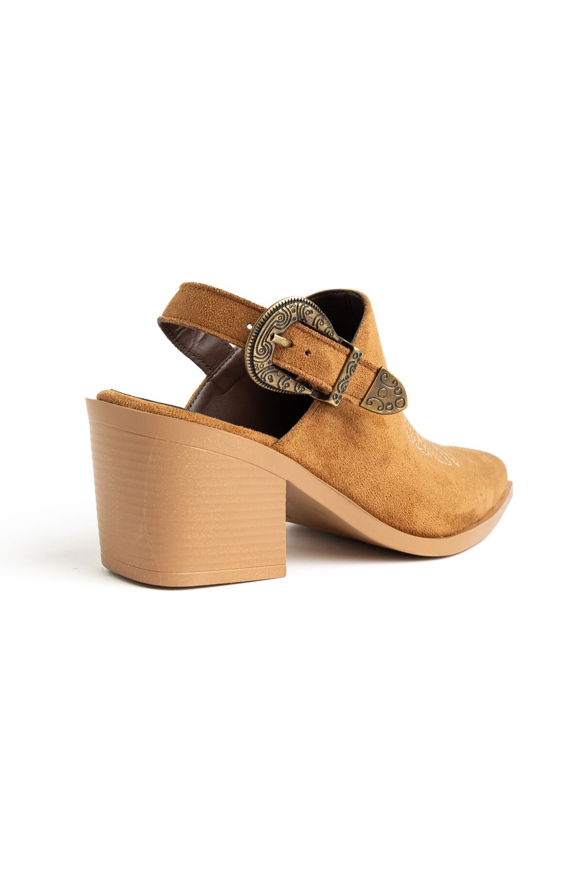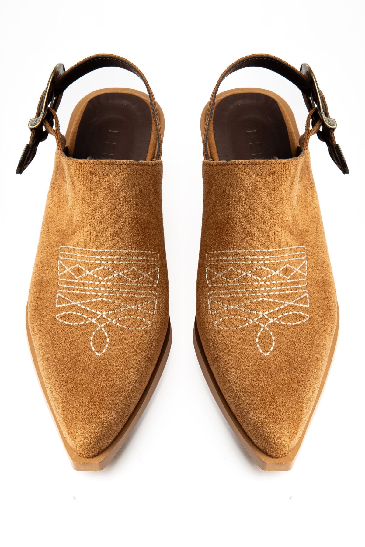 Taba Süet Nakışlı Arkası Açık Sandalet 1911